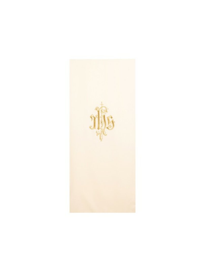 Coprileggio colore avorio con decoro oro e JHS. Con questo prodotto l'ambiente risulterà più armonioso e il tuo leggio si conserverà in ottime condizioni per illo tempore. Ottimo bilanciamento tra qualità, durabilità e soprattutto prezzo. Il coprileggio è disponibile nei colori liturgici avorio, rosso, verde, viola e rosa. Il coprileggio viene prodotto da un'officina tessile di provata esperienza e qualità tanto da fornire, in varie occasioni, il Vaticano.