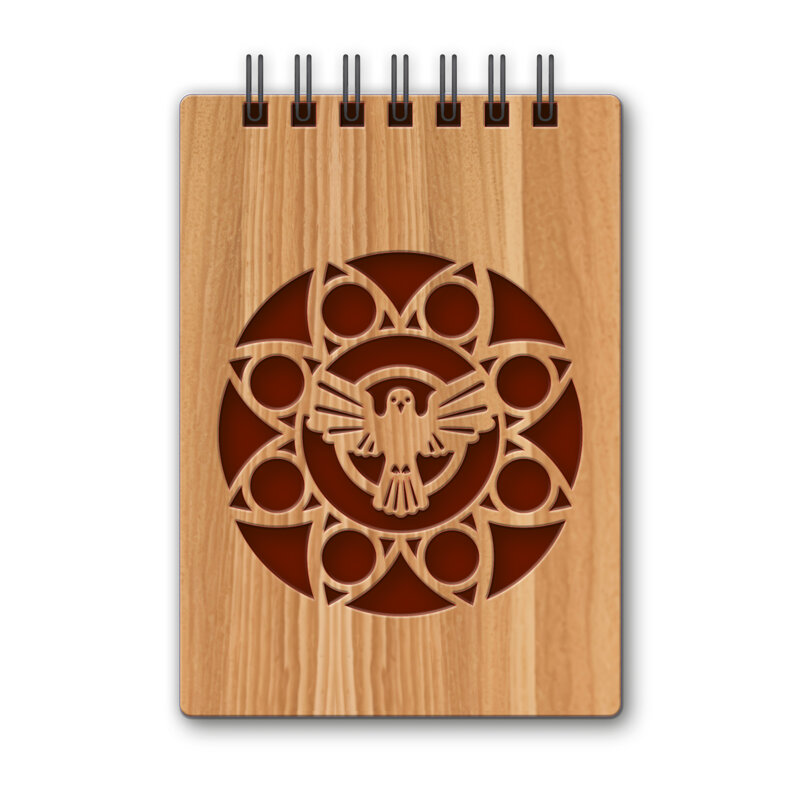Taccuino in legno con simbologia della Cresima.